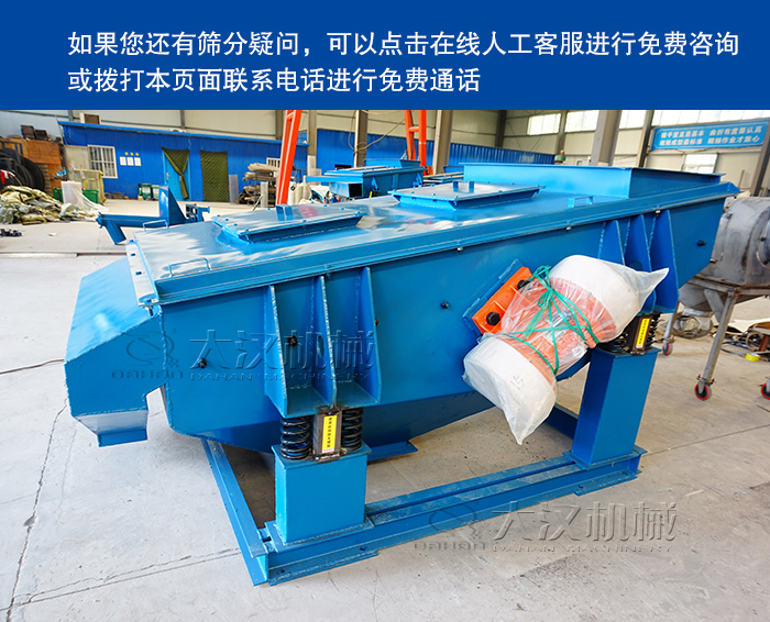以上就是石英砂礦用振動(dòng)篩進(jìn)行篩分工作時(shí)要注意的問題,如果您還有篩分疑問,可以點(diǎn)擊在線人工客服進(jìn)行免費(fèi)咨詢或撥打本頁面聯(lián)系電話進(jìn)行免費(fèi)通話。買機(jī)石英砂礦用振動(dòng)篩,就選<大漢機(jī)械>!