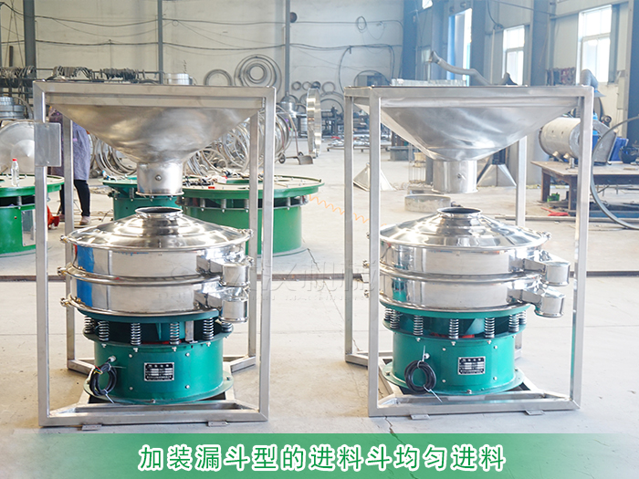 解決方式:可增大振動篩振動幅度或者在進料口處加裝漏斗型的進料斗均勻進料。
