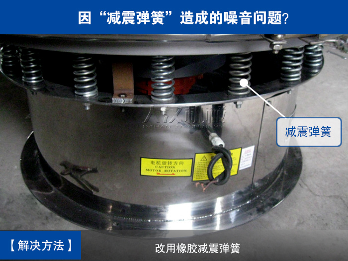 三次元振動篩在篩分過程中如果采用鋼絲減震彈簧會發(fā)生彈簧與支座之間發(fā)生摩擦產(chǎn)生噪音,所以可改成橡膠材質(zhì)的減震彈簧。