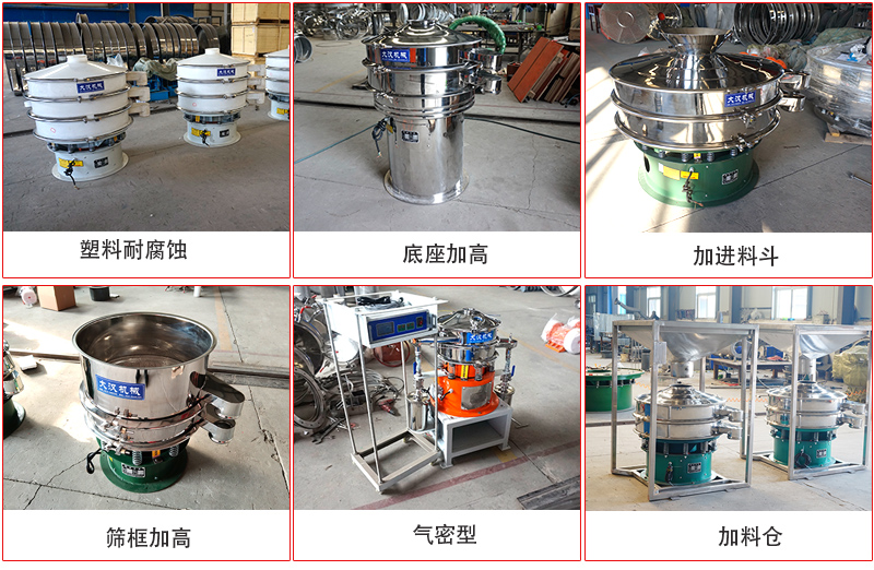 從材質上分標準型旋振篩和普通型旋振篩的,標準型的是與物料接觸部分為304不銹鋼材質,底座為碳鋼材質,普通型的通體為普碳鋼材質,旋振篩型號是從φ400-φ1800mm直徑,旋振篩價格根據(jù)材質和直徑大小、層數(shù)價格不同。 旋振篩設備可以根據(jù)客戶的需求設計型號,0-400目都可以篩選,不管是液態(tài)的,還是漿狀的0-600目都可以過濾。"大漢"旋振篩系列產品同時配備專門的篩網(wǎng)清理裝置,如彈跳球、超聲波篩分系統(tǒng)、轉筒刷等,降低網(wǎng)風險。