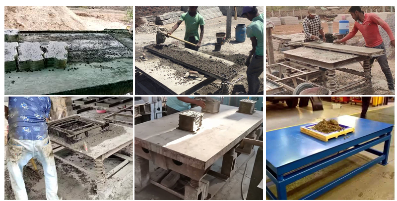 工作臺下面的臥式振動電機(jī)產(chǎn)生足夠的澎湃均勻的激振力并傳導(dǎo)到臺面上,從而驅(qū)動臺面上的模具中的水泥等澆筑液在激烈的震蕩下產(chǎn)生上下運(yùn)動的加速度,從而擠壓出物料間的氣泡,減少澆注液體間的空氣間隙,從而達(dá)到提升預(yù)制件等澆筑模具的質(zhì)量提升的目的。