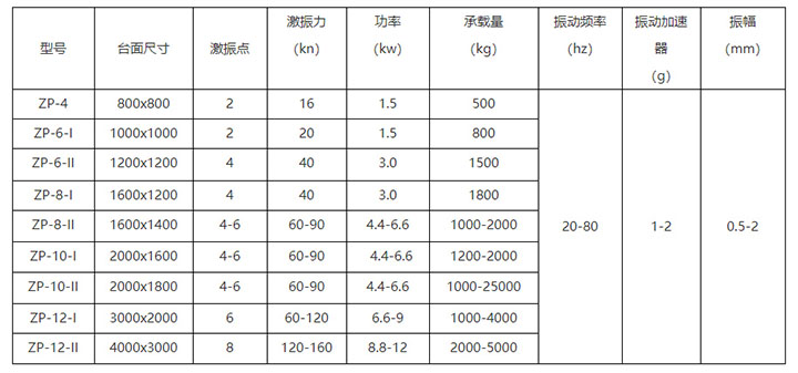三維振實(shí)臺(tái)其利用振動(dòng)電機(jī)作為振動(dòng)來(lái)源,使物料在工作臺(tái)上完成:橫向,縱向,上下三維的運(yùn)動(dòng)軌跡,所以稱(chēng)之為三維振實(shí)臺(tái)。該設(shè)備的振動(dòng)電機(jī)個(gè)數(shù)為雙數(shù)例如:4,6,8,10等而振動(dòng)電機(jī)的型號(hào)決定了三維振實(shí)臺(tái)的主要技術(shù)參數(shù)。